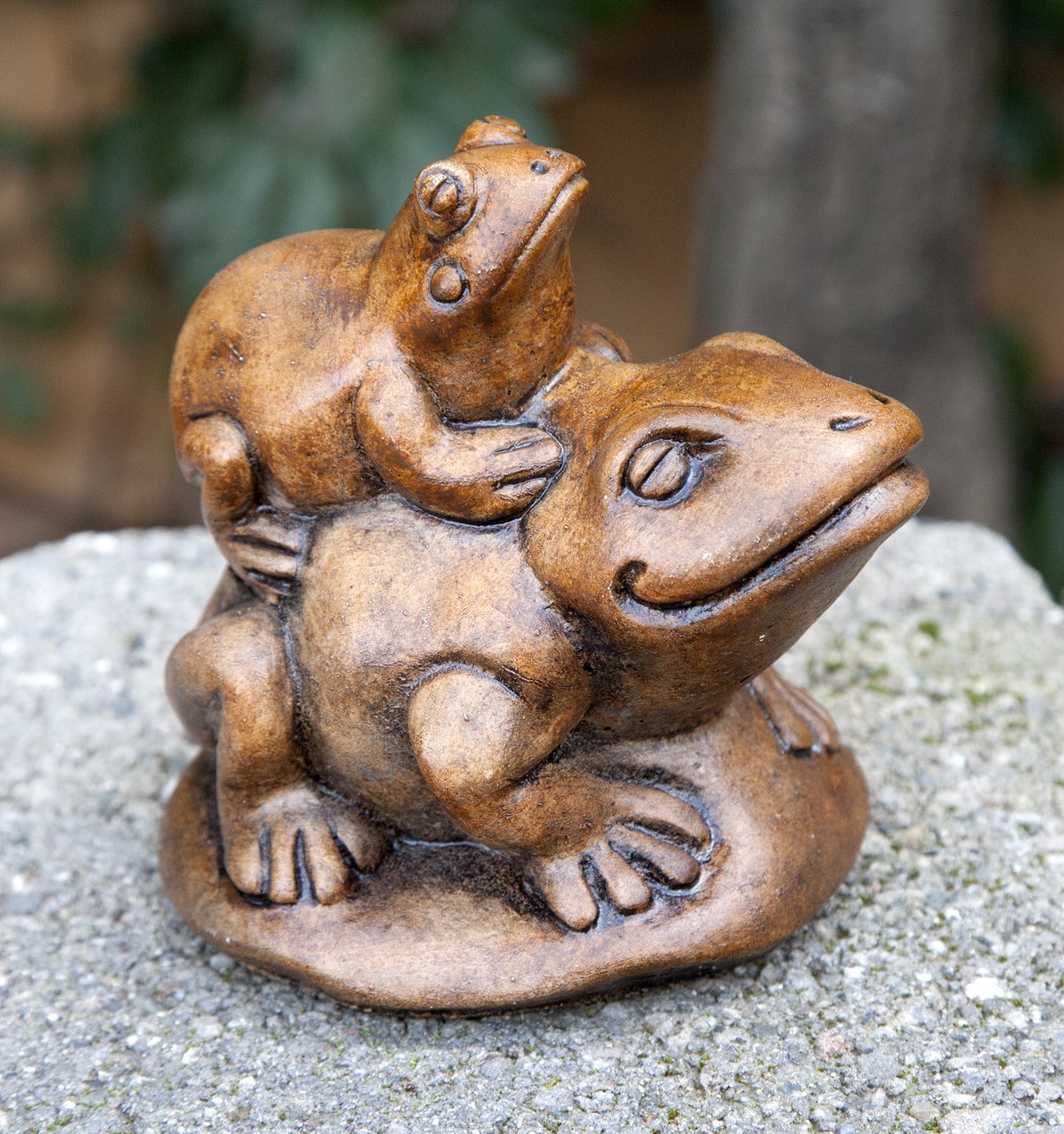 This hoppy mommy is taking her baby out for a stroll around the yard. The baby frog has an endearing look of curiosity at the new sights and sounds of the world. There are so many beautiful plants and flowers to learn about. Experience your yard through the eyes of a child with this wonderful statue filled with love.