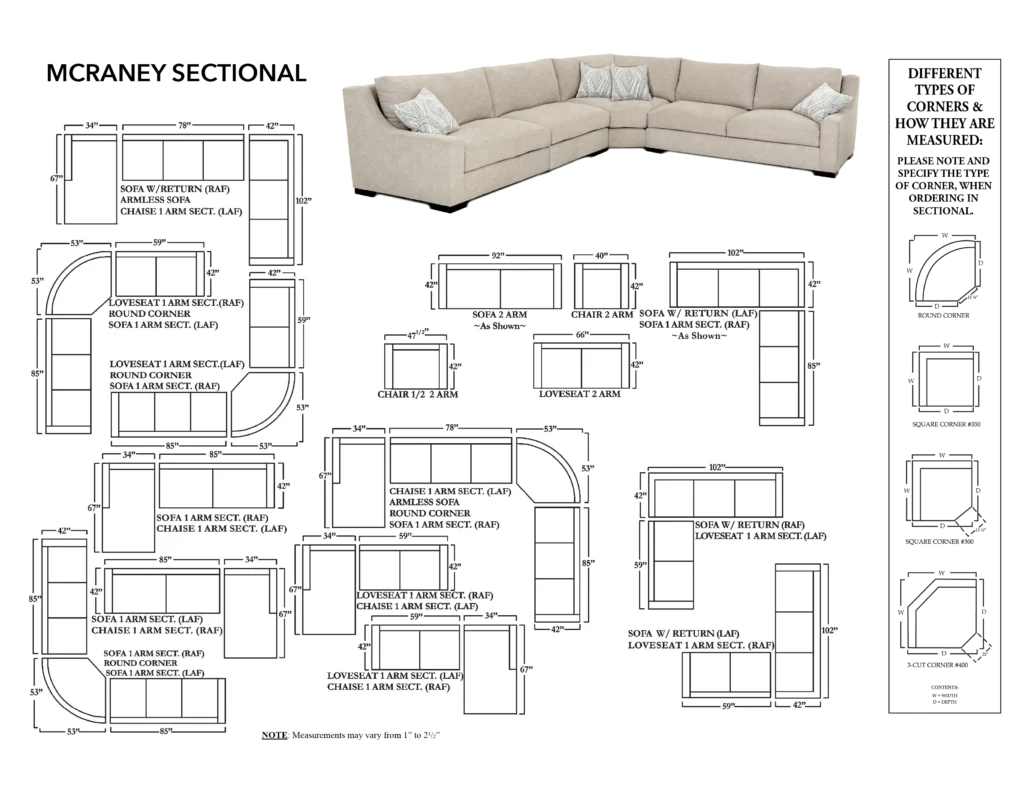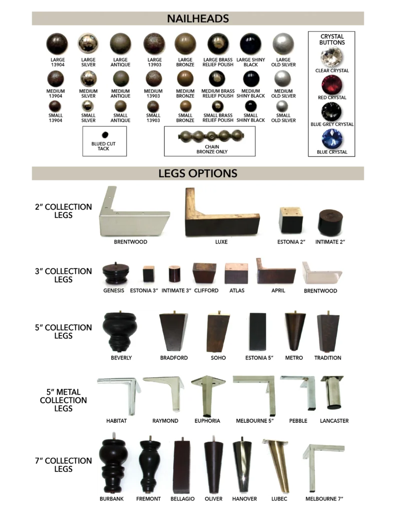 *picture depicts the leg options for the MCRANEY model and nailhead options are only available on select models